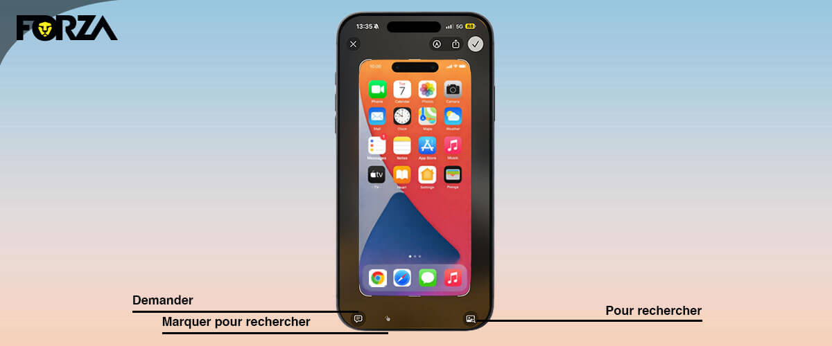 - De knop ‘Vraag’ linksonder is gekoppeld aan de Apple Intelligence-analyse van screenshots. Daarmee kun je een vraag stellen over wat er op je screenshot staat zoals “Wat is dit gerecht?” of “Waar kan ik dit kopen?” Apple Intelligence geeft jou het antwoord.