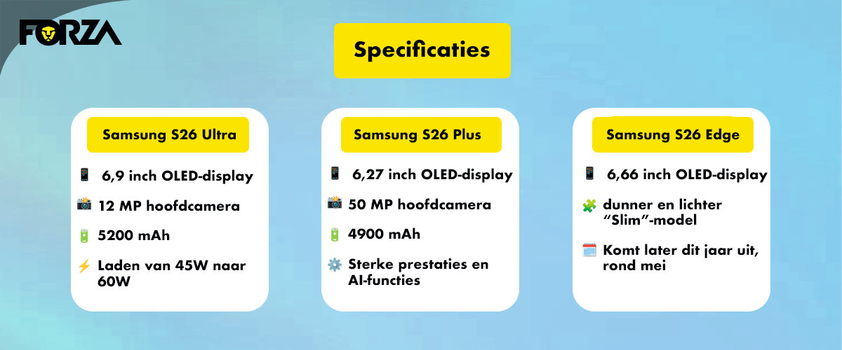 Vous en avez probablement entendu parler : le nouveau Samsung Galaxy S26 arrive ! Il semble maintenant que le Samsung S26 sera présenté fin février et sera dans les magasins à mi-mars. Des rumeurs et des attentes flottent partout. Et c'est logique. Cette série promet en effet un certain nombre de grandes innovations. Pensez à une puce Exynos conçue par Samsung qui permet une vitesse plus élevée et une consommation d'énergie réduite. Il y a aussi des ajustements de design, des améliorations de la caméra et une bonne dose d'IA à venir.