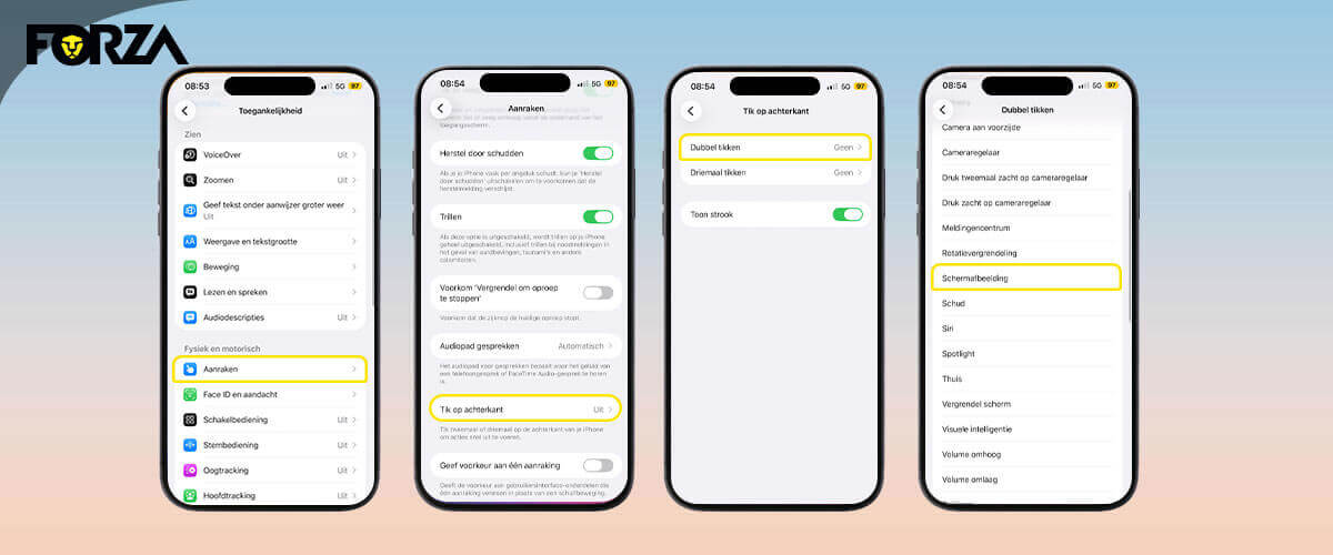 Wil jij helemaal geen gebruik maken van knoppen? Je kunt namelijk instellen dat wanneer jij dubbel of driemaal op de achterzijde van je telefoon tikt, er automatisch een screenshot wordt gemaakt. Dat doe je als volgt: