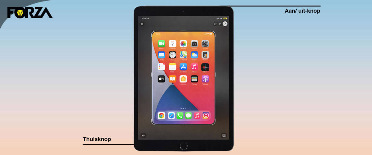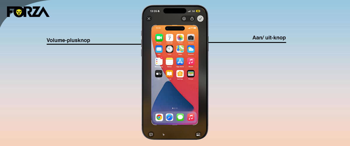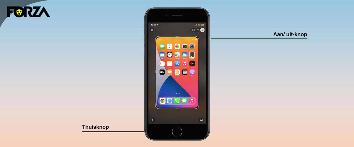Heb je een iPhone zónder thuisknop, maar mét een volledig scherm? Dan heb je de aan/uitknop aan de rechterkant en de volume-plusknop aan de linkerkant nodig om een screenshot te maken. Bij Forza haal je voordeliger een refurbished toestel met of zonder thuisknop in huis met dezelfde hoge kwaliteit.