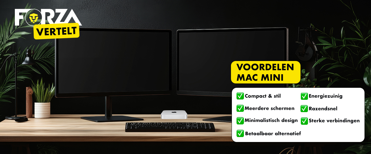 - Goede prijs-kwaliteit verhouding: Een Mac Mini kopen is vaak betaalbaarder dan een iMac of Macbook terwijl je toch de verwachte Apple-kwaliteit krijgt. Al helemaal wanneer je een refurbished Mac Mini bij Forza aanschaft.