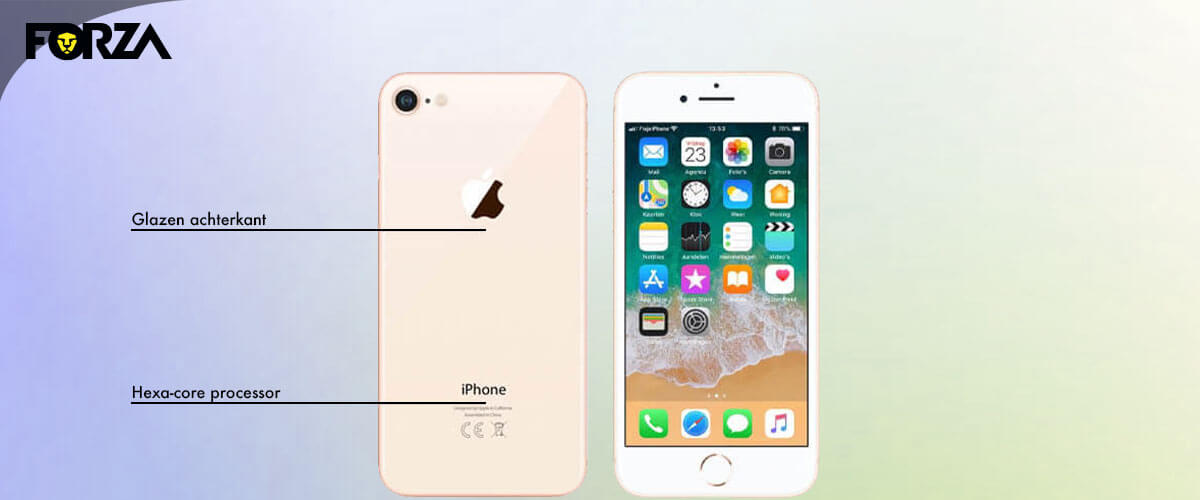 Voor het eerst in de geschiedenis kun je de iPhone 8 uit 2017 draadloos opladen. De opvolger van de iPhone 7 heeft namelijk een glazen achterkant. Oók bij de grotere iPhone 8 Plus is dit mogelijk. Waar beide toestellen écht in uitblinken is kracht en snelheid. Voor het eerst is een iPhone van een hexa-core processor (6 kernen) voorzien. Hierdoor is een hele goede verdeling tussen zware taken en het lichte werk mogelijk, waardoor de iPhone razendsnel én energiezuiniger is dan voorheen.