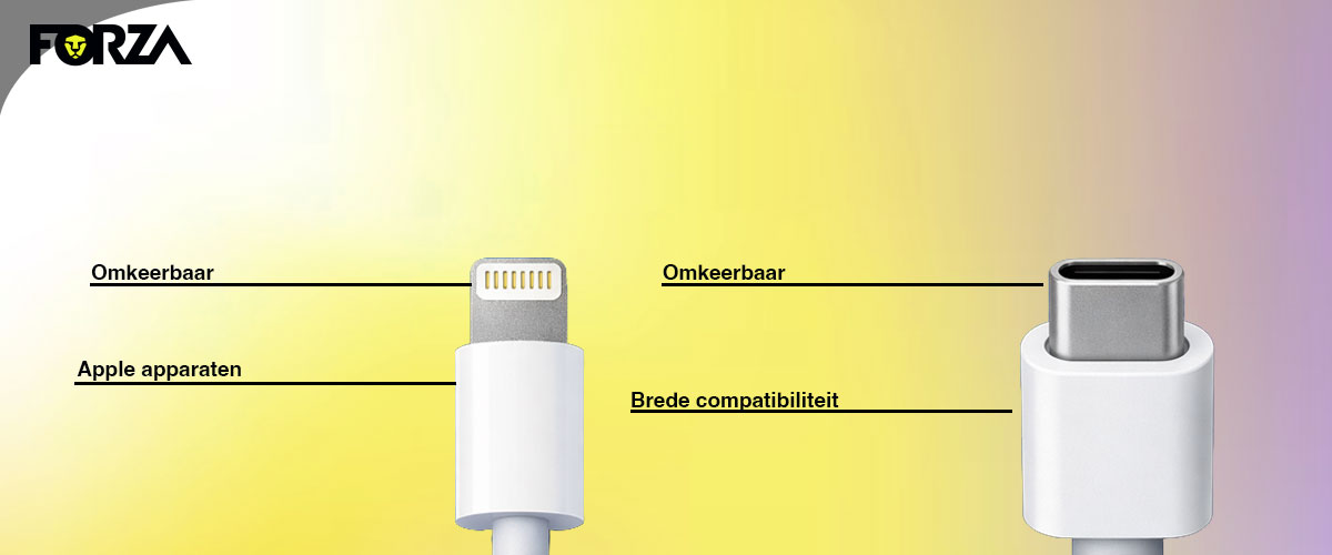 Short content: Lightning en USB-C zijn allebei oplaadpoorten. Het verschil zit vooral in gebruiksgemak en toekomstbestendigheid. In deze blog nemen we je mee door de verschillen.